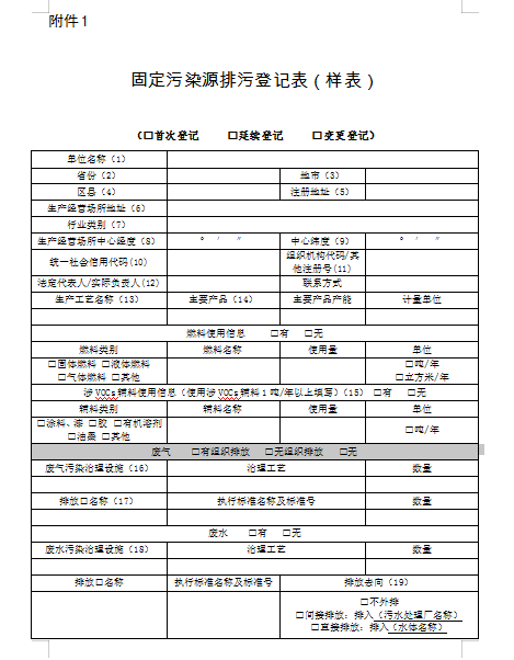 固定污染源排污登記,是指污染物產(chǎn)生量、排放量和對(duì)環(huán)境的影響程度很小,依法不需要申請(qǐng)取得排污許可證的企業(yè)事業(yè)單位和其他生產(chǎn)經(jīng)營(yíng)者(以下簡(jiǎn)稱排污單位),應(yīng)當(dāng)填報(bào)排污登記表。