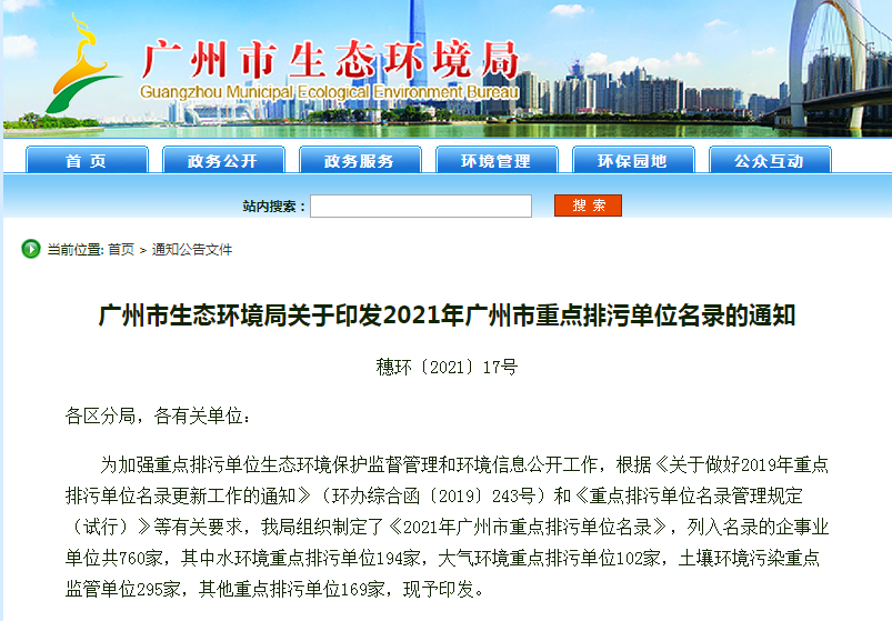 昨日,市生態(tài)環(huán)境局公布了2021年廣州市重點(diǎn)排污單位名錄,共760家企事業(yè)單位列入名錄。根據(jù)相關(guān)規(guī)定,列入名錄的單位應(yīng)主動(dòng)公開(kāi)環(huán)境信息,自覺(jué)接受社會(huì)監(jiān)督。